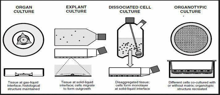 به طور کلی کشت سلول میتواند نتیجه مهاجرت سلولها از یک قطعه بافت و یا جداسازی مکانیکی یا آنزیمی از یک بافت باشد.